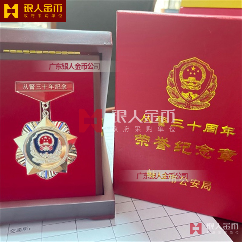 - 配套包裝:定制木質(zhì)禮盒或紅色紙盒,印有 “從警三十周年榮譽(yù)紀(jì)念章” 及頒發(fā)單位名稱,搭配專屬綬帶,彰顯莊重與儀式感。