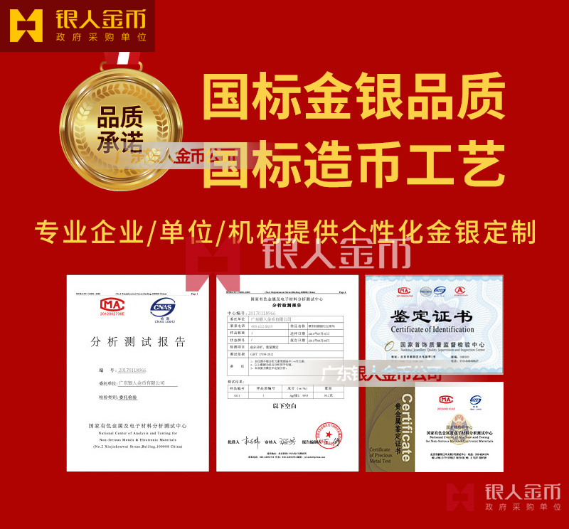 廣東銀人金幣公司(及旗下廣州天河恒帆徽章廠)始終堅(jiān)守 “國標(biāo)金銀品質(zhì)、國標(biāo)造幣工藝” 的承諾,憑借央行授權(quán)的黃金定制合規(guī)資質(zhì),以及《貴金屬制品生產(chǎn)許可》《貴金屬經(jīng)營資質(zhì)》《黃金制品銷售許可證》《經(jīng)營流通人民幣許可證》等完備資質(zhì),成為黨政機(jī)關(guān)、企事業(yè)單位榮譽(yù)表彰與紀(jì)念定制的首選合作伙伴。