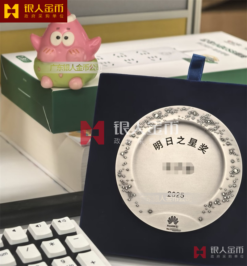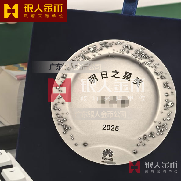 深圳華為2026年會明日之星純銀銀牌制作_純銀紀念盤定制_銀質紀念盤定制_銀制紀念盤定制_員工紀念銀盤定制_純銀紀念牌定制