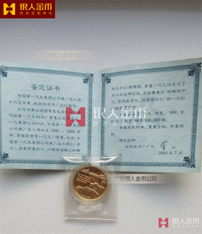 吉林長(zhǎng)春中國(guó)一汽建廠50周年紀(jì)念金幣定制_純金紀(jì)念幣定制_定制純金紀(jì)念章_純金金幣定制_黃金紀(jì)念幣定制